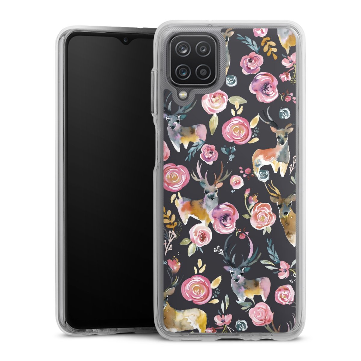 Hirsche und Blumen Anthrazit