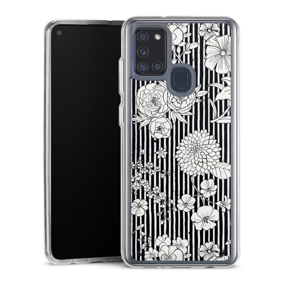 Blumen und Streifen Schwarz und Weiß