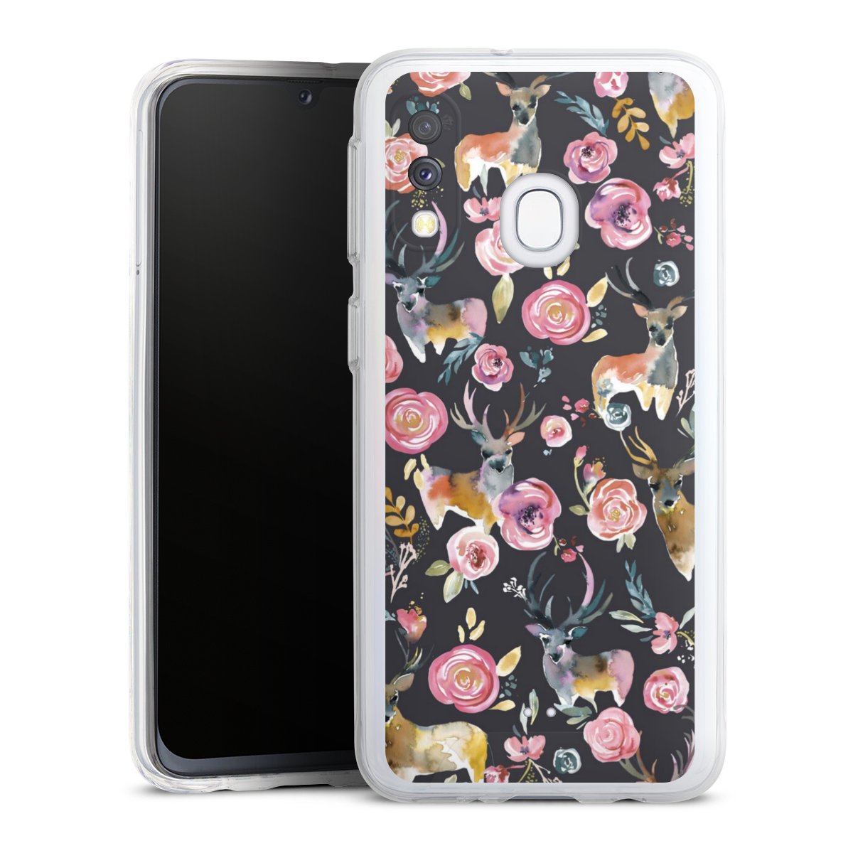 Hirsche und Blumen Anthrazit