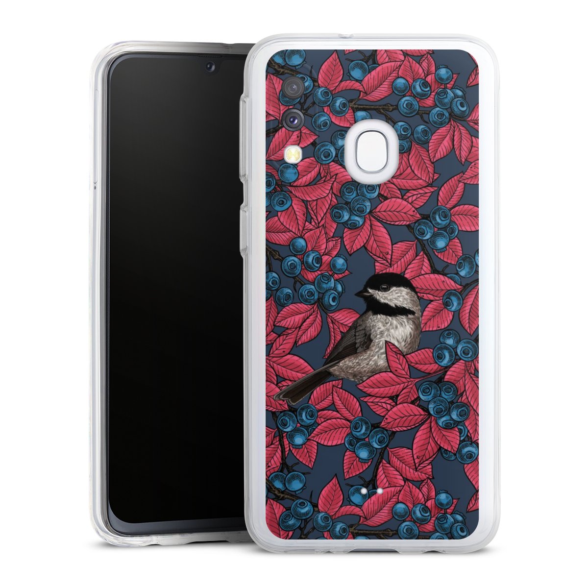 Blaubeeren und Vögel auf Navy