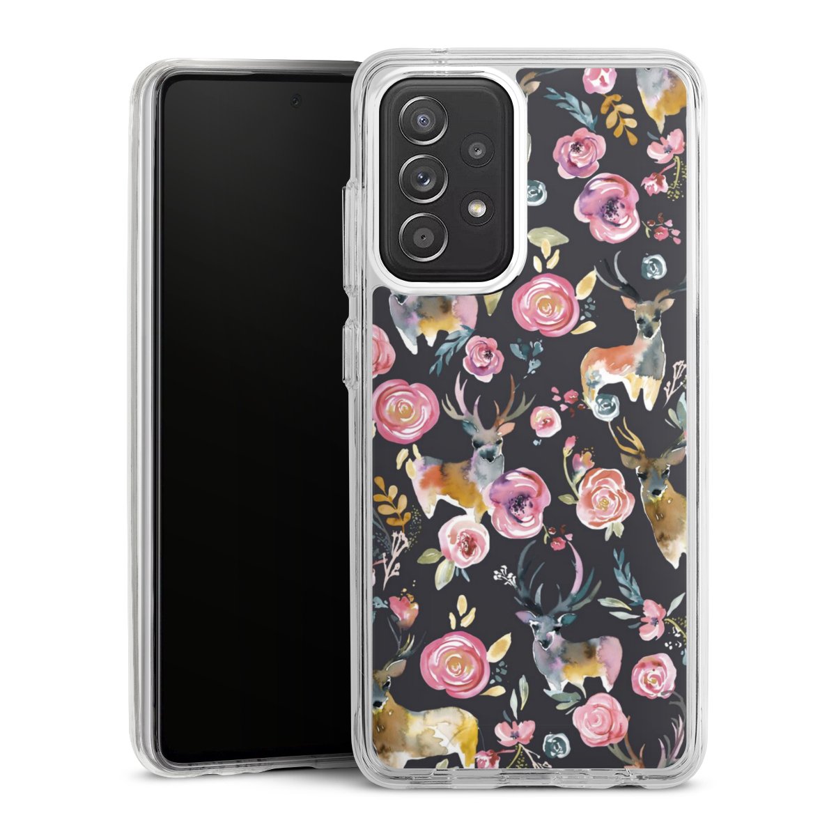 Hirsche und Blumen Anthrazit