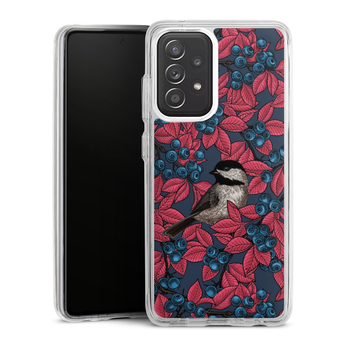 Blaubeeren und Vögel auf Navy