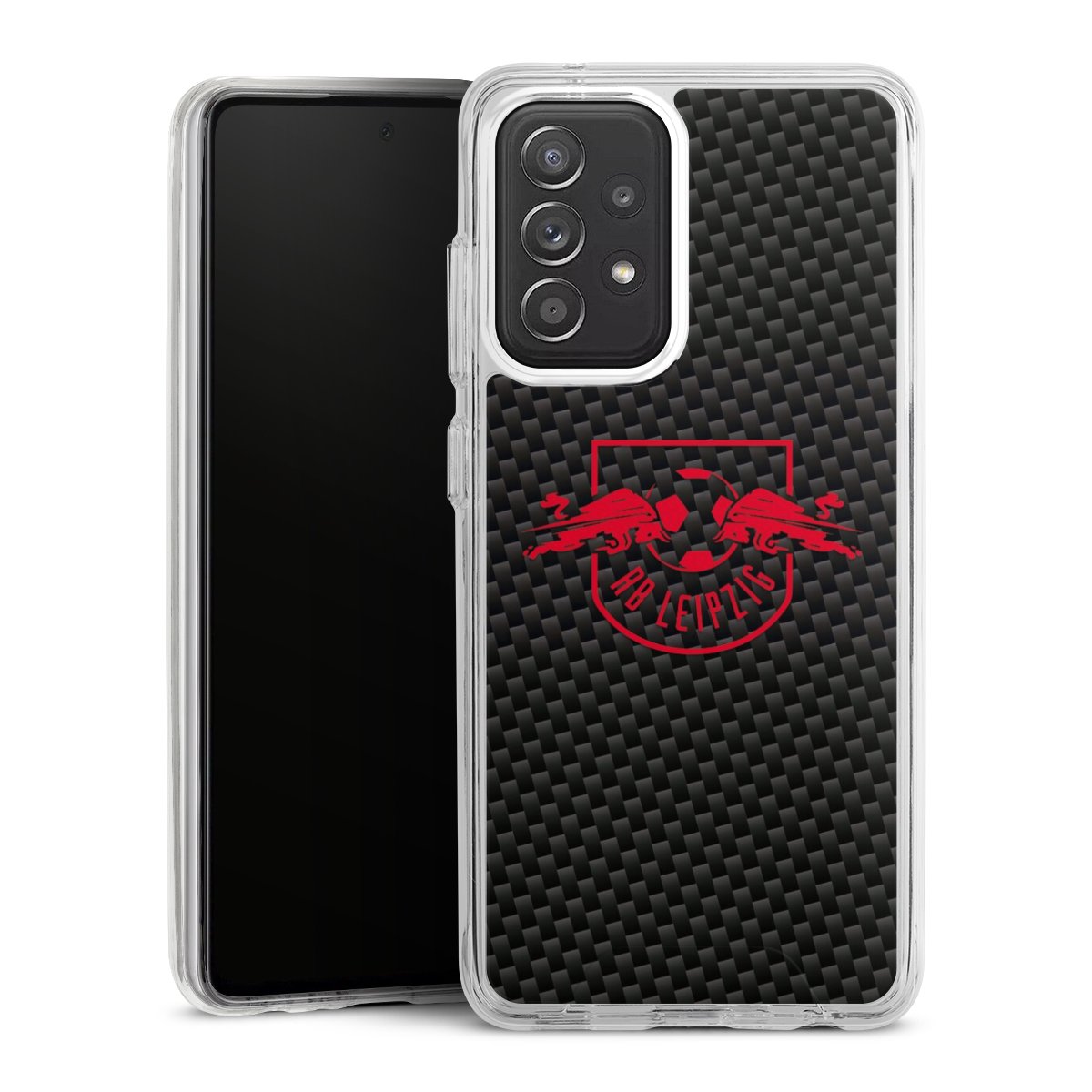 Rotes RB Leipzig Logo auf Carbonoptik
