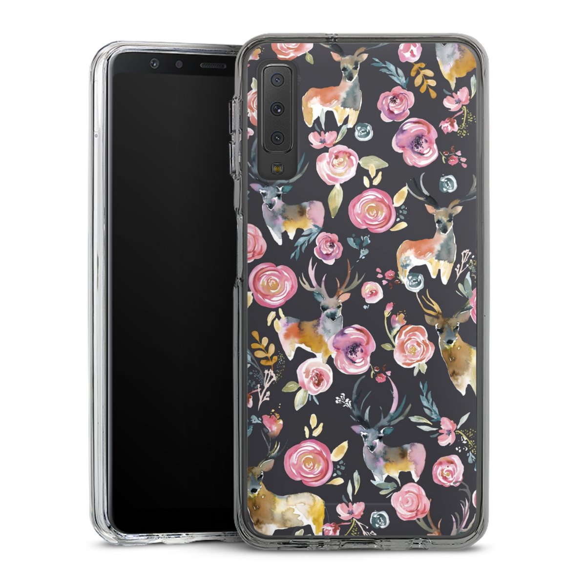 Hirsche und Blumen Anthrazit