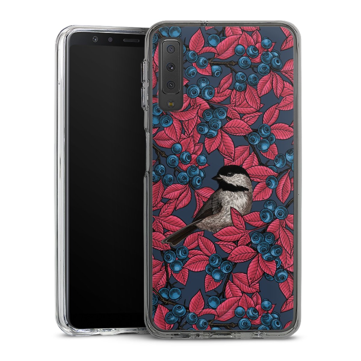Blaubeeren und Vögel auf Navy