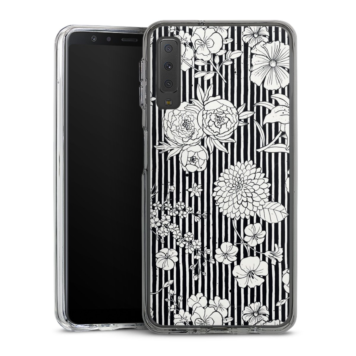 Blumen und Streifen Schwarz und Weiß