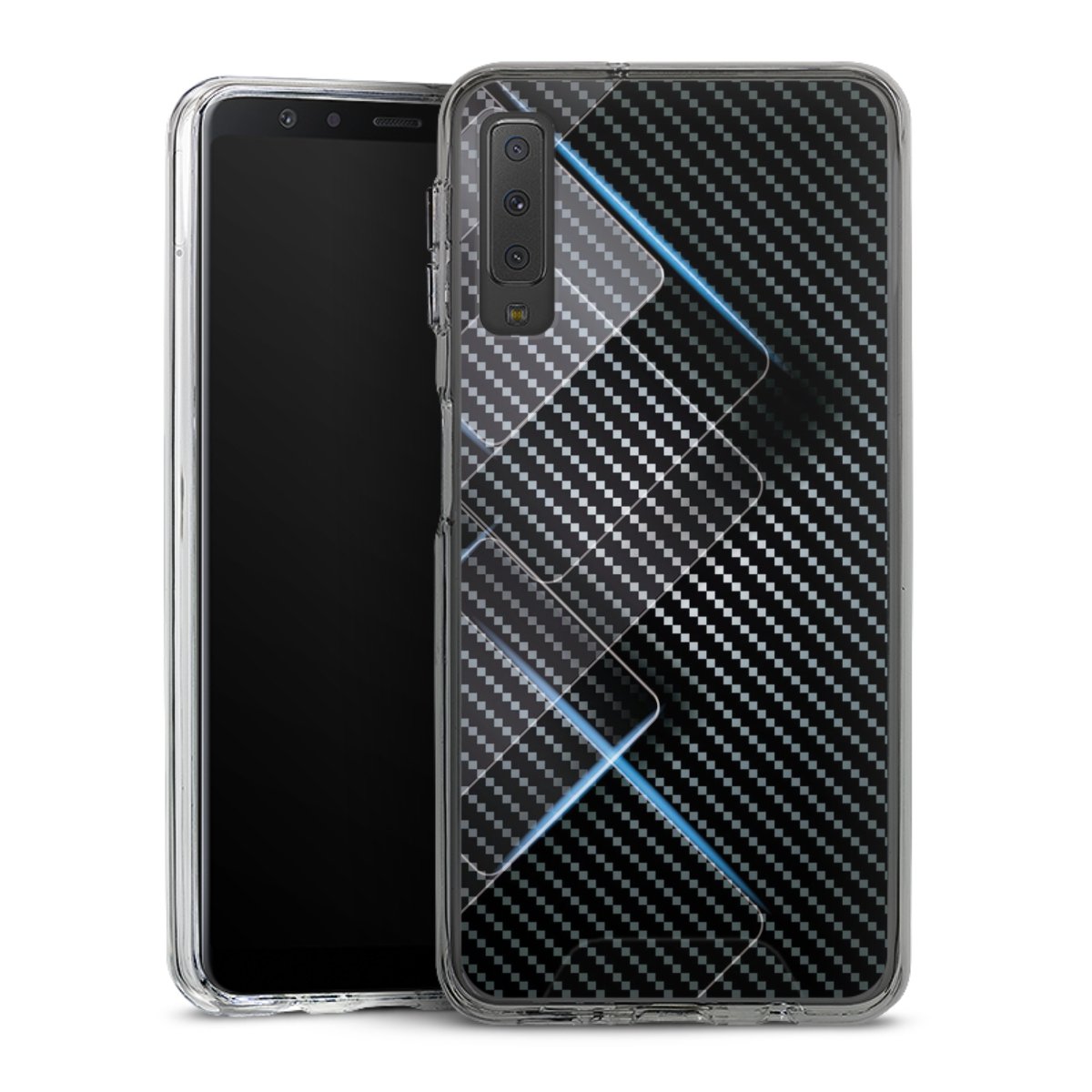Blaue Linien auf Karbon