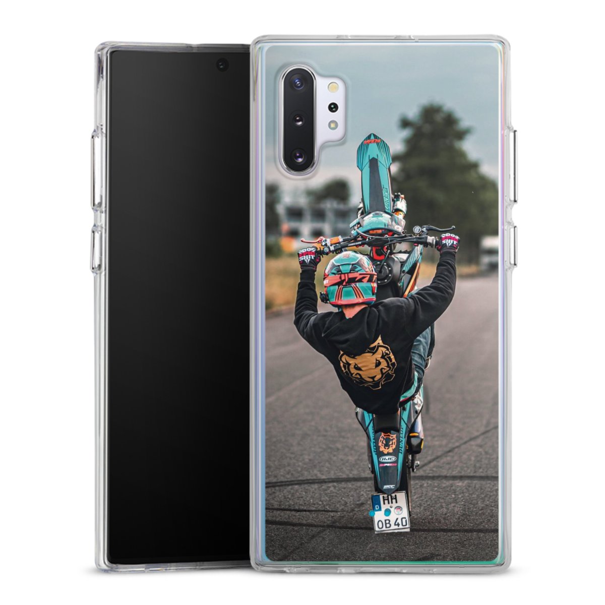 Diese einteilige Schutzhülle ist eine Power-Kombination aus Silikon Case und Hard Case, die sich aus zwei Komponenten zusammensetzt: Während der flexible Silikonrand aus robustem TPU (thermoplastischem Polyurethan) zuverlässig Stöße und Stürze abfedert, sorgt die solide Hartschale aus Polycarbonat auf der Rückseite für zusätzliche Stabilität. Die Handyhülle gibt es in der Farbe Transparent.