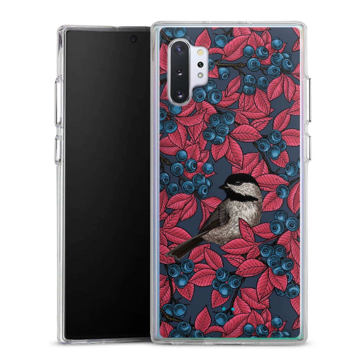 Blaubeeren und Vögel auf Navy