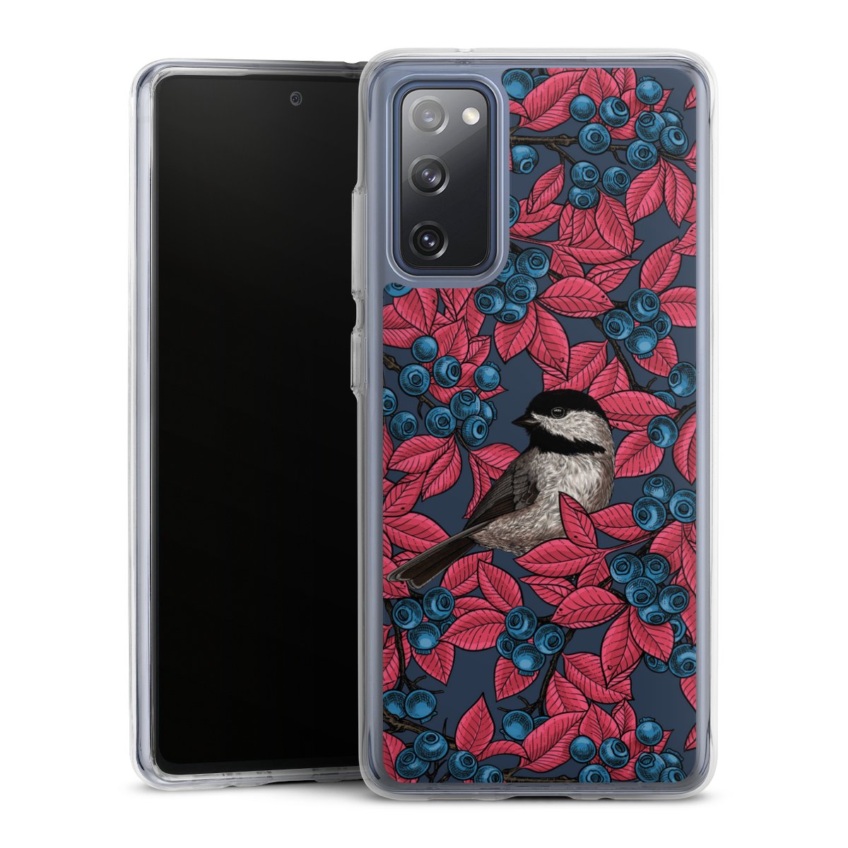 Blaubeeren und Vögel auf Navy