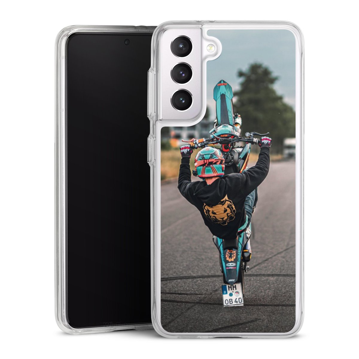 Diese einteilige Schutzhülle ist eine Power-Kombination aus Silikon Case und Hard Case, die sich aus zwei Komponenten zusammensetzt: Während der flexible Silikonrand aus robustem TPU (thermoplastischem Polyurethan) zuverlässig Stöße und Stürze abfedert, sorgt die solide Hartschale aus Polycarbonat auf der Rückseite für zusätzliche Stabilität. Die Handyhülle gibt es in der Farbe Transparent.