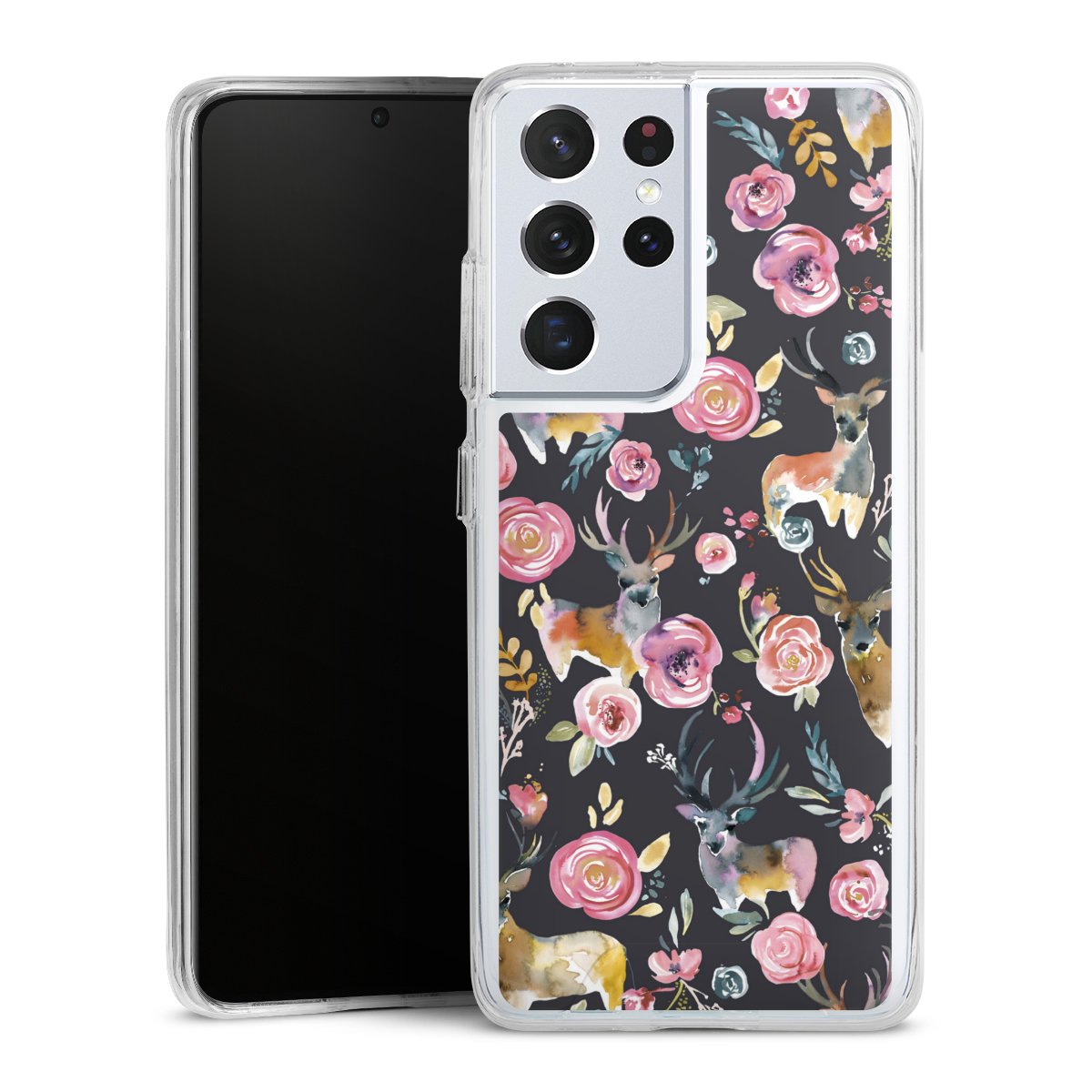 Hirsche und Blumen Anthrazit