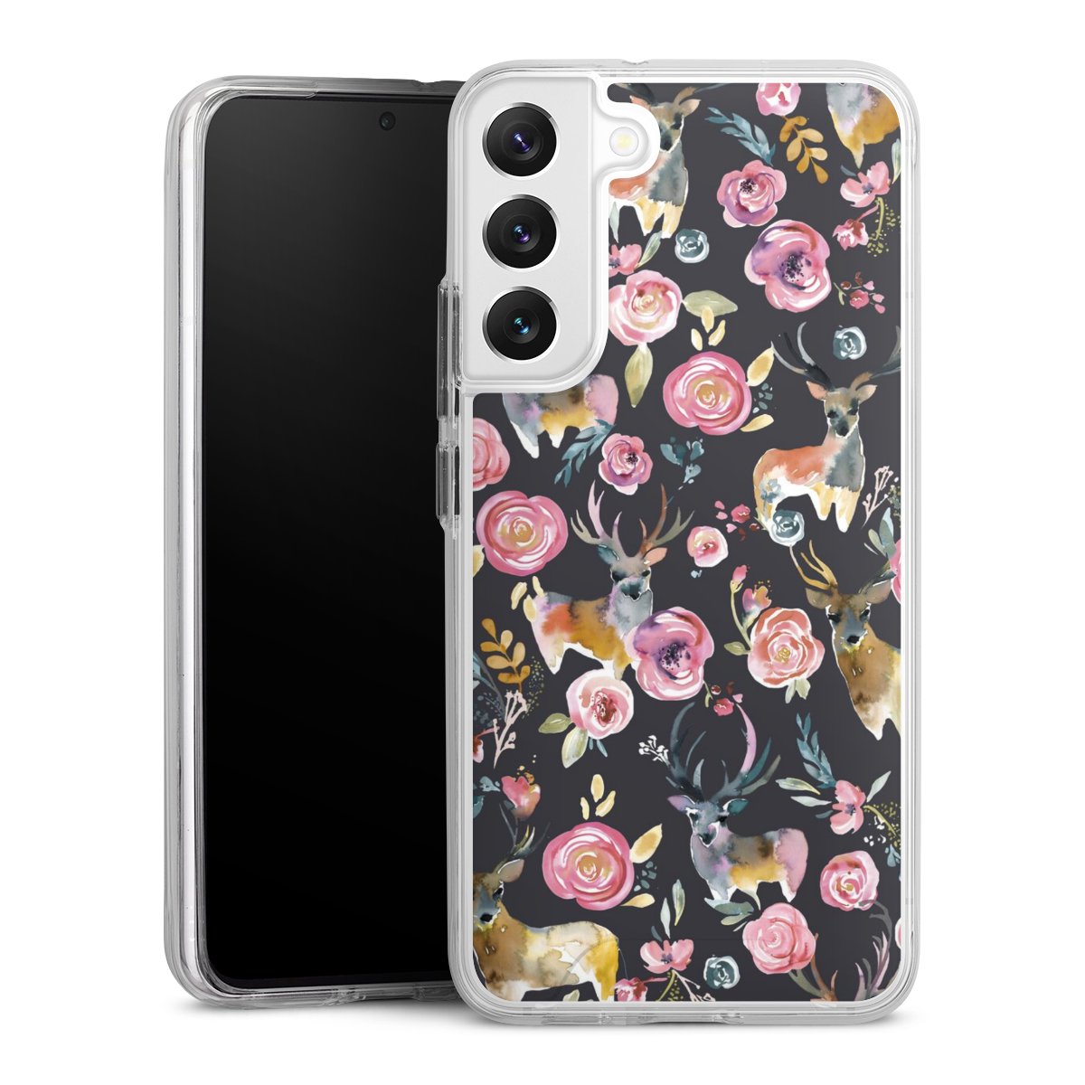 Hirsche und Blumen Anthrazit