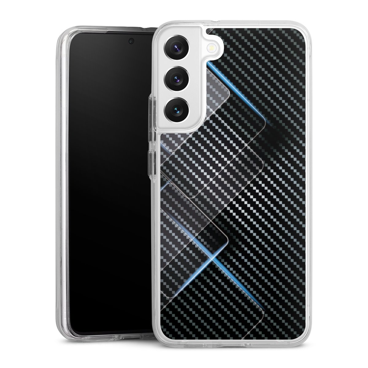Blaue Linien auf Karbon