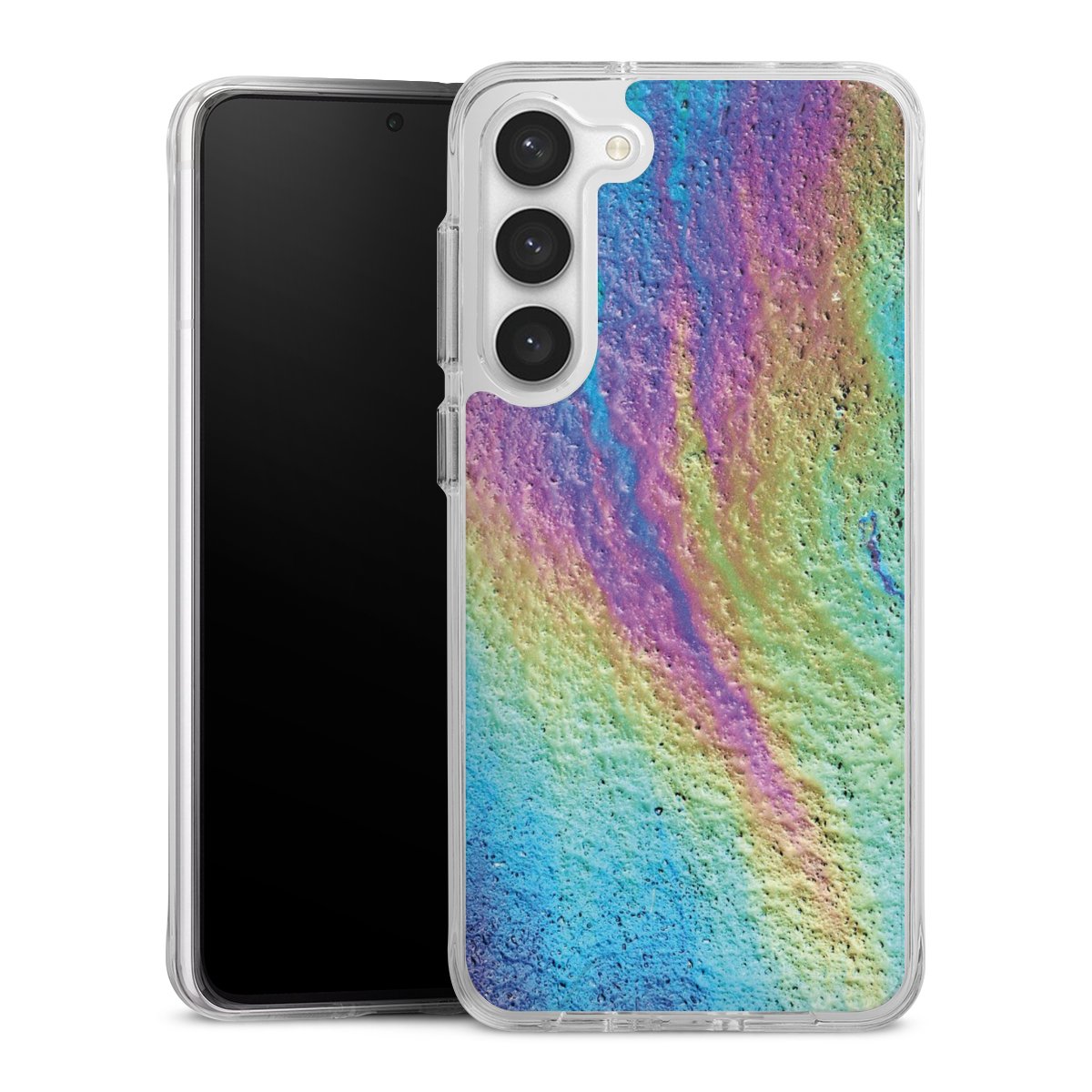 Diese einteilige Schutzhülle ist eine Power-Kombination aus Silikon Case und Hard Case, die sich aus zwei Komponenten zusammensetzt: Während der flexible Silikonrand aus robustem TPU (thermoplastischem Polyurethan) zuverlässig Stöße und Stürze abfedert, sorgt die solide Hartschale aus Polycarbonat auf der Rückseite für zusätzliche Stabilität. Die Handyhülle gibt es in der Farbe Transparent.