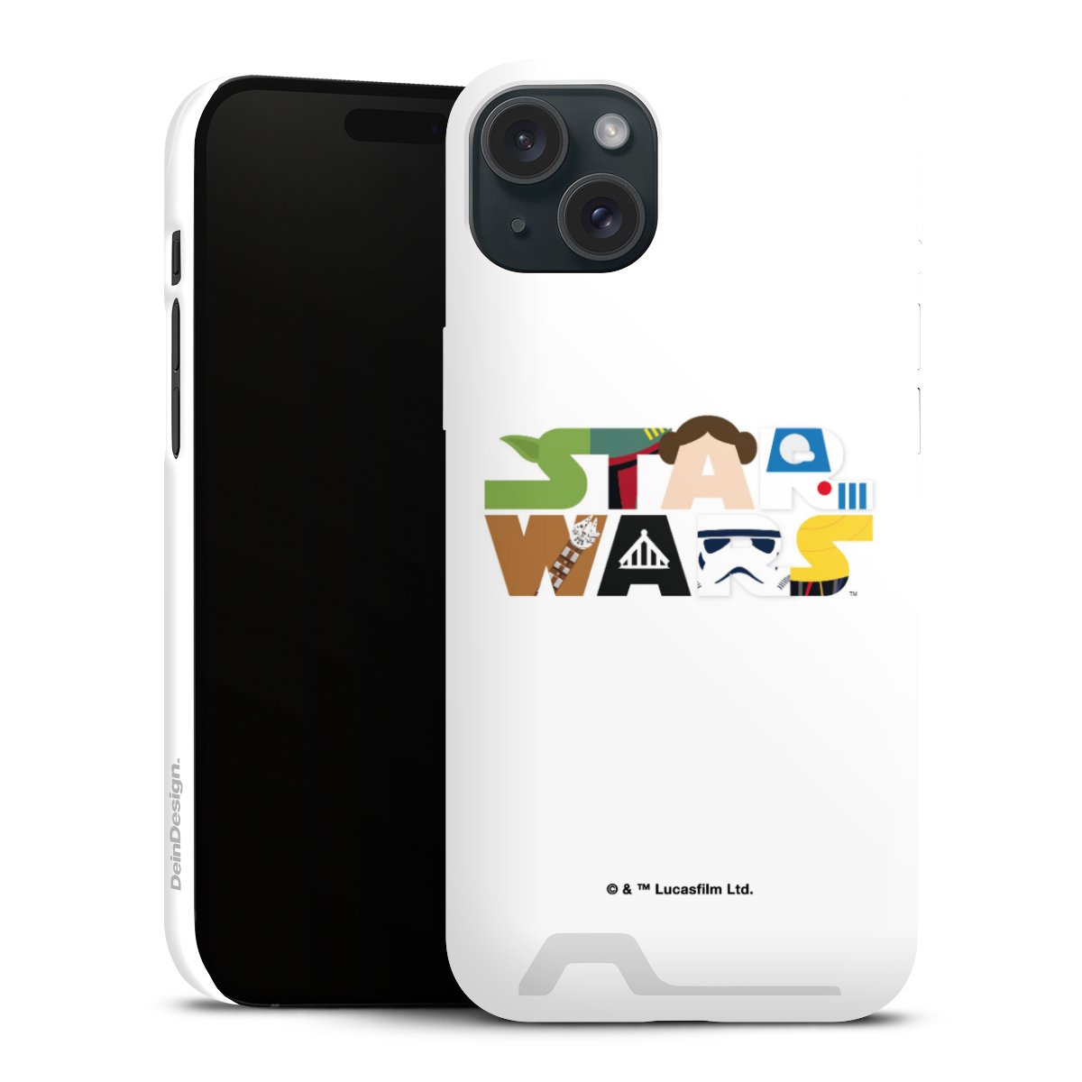 Darth Vader, C3PO, R2D2 und Meister Yoda findest Du in unserem Star Wars Shop auf DeinDesign. Natürlich gibt es auch Star Wars Handyhüllen mit den legendären Charakteren Luke Skywalker, Prinzessin Leia und Han Solo, den Helden der ersten Saga. Wer jedoch die Hauptfiguren der neuen Star Wars Filme ins Herz geschlossen hat, kann auch Finn und Rey mit ihren mächtigen Waffen auf der Rückseite seines Smartphones haben. Die vielseitigen Schutzhüllen in verschiedenen Ausführungen sind das perfekte Geschenk für alle Star Wars Fans, die ihrem Smartphone eine individuelle Note verleihen wollen.