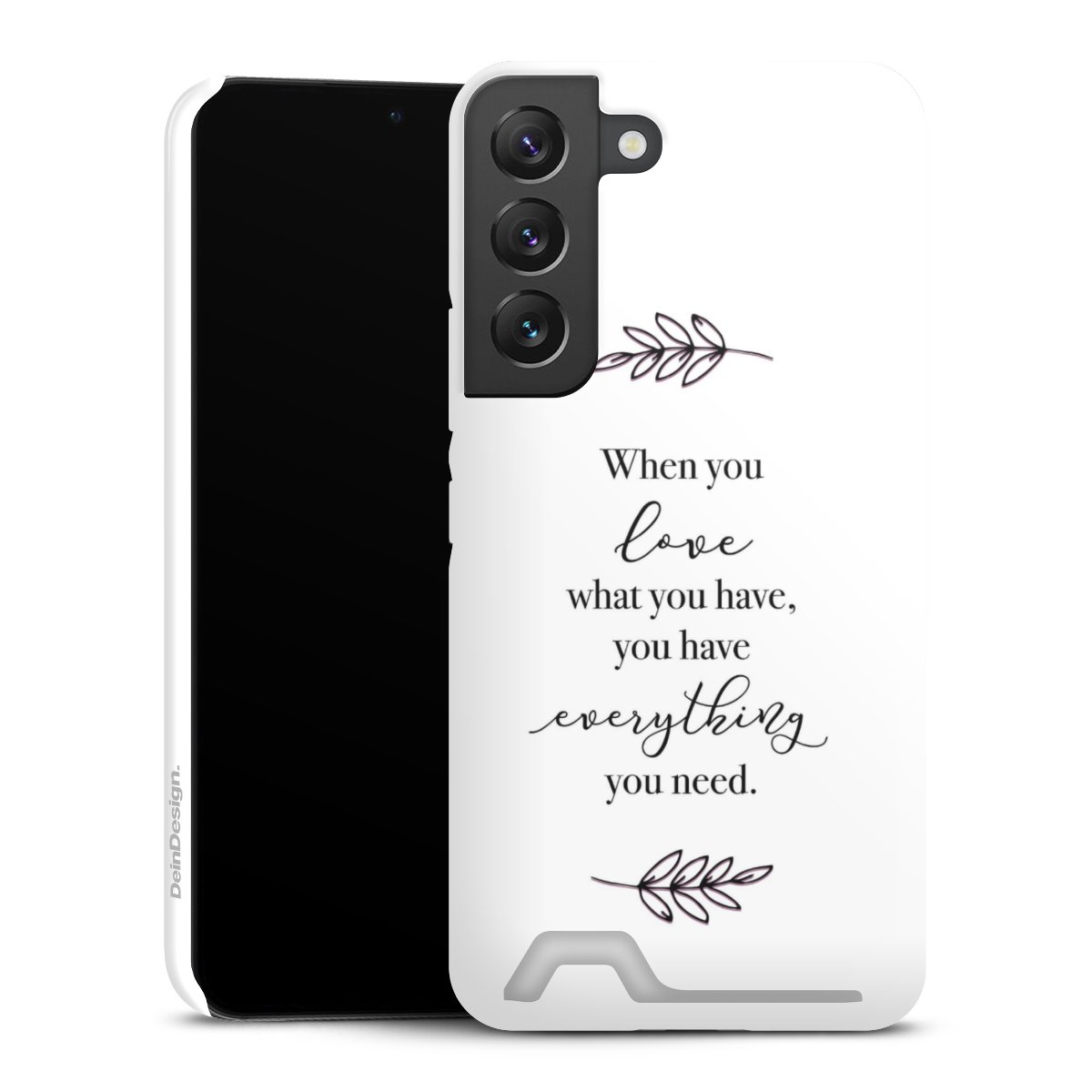Entscheide Dich für einen Spruch, der zu 100% aussagt wofür Du einstehst. Zusätzlich kannst Du zu Deinem ausgewählten Spruch ein passendes Motiv kombinieren, sodass Dein Smartphone optisch was zu bieten hat. Doch nicht nur für das Aussehen sorgen wir, sondern auch zuverlässigen Schutz vor unschönen Alltagsgebrauchsspuren garantieren wir Dir. DeinDesign steht für innovative Drucktechnologie und hochwertige Materialien.