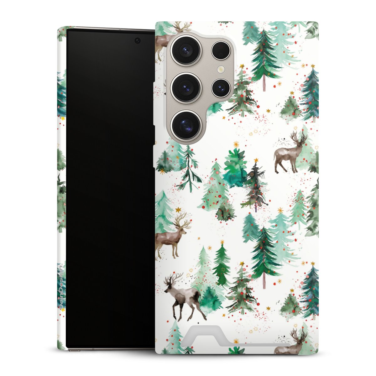 Hirsche und Winterweihnachtsbäume