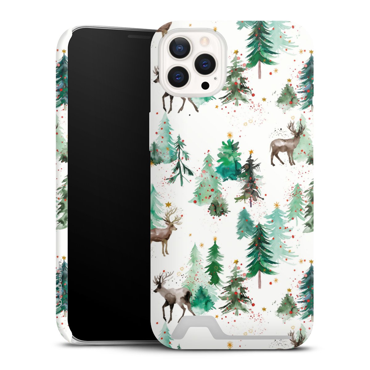 Hirsche und Winterweihnachtsbäume