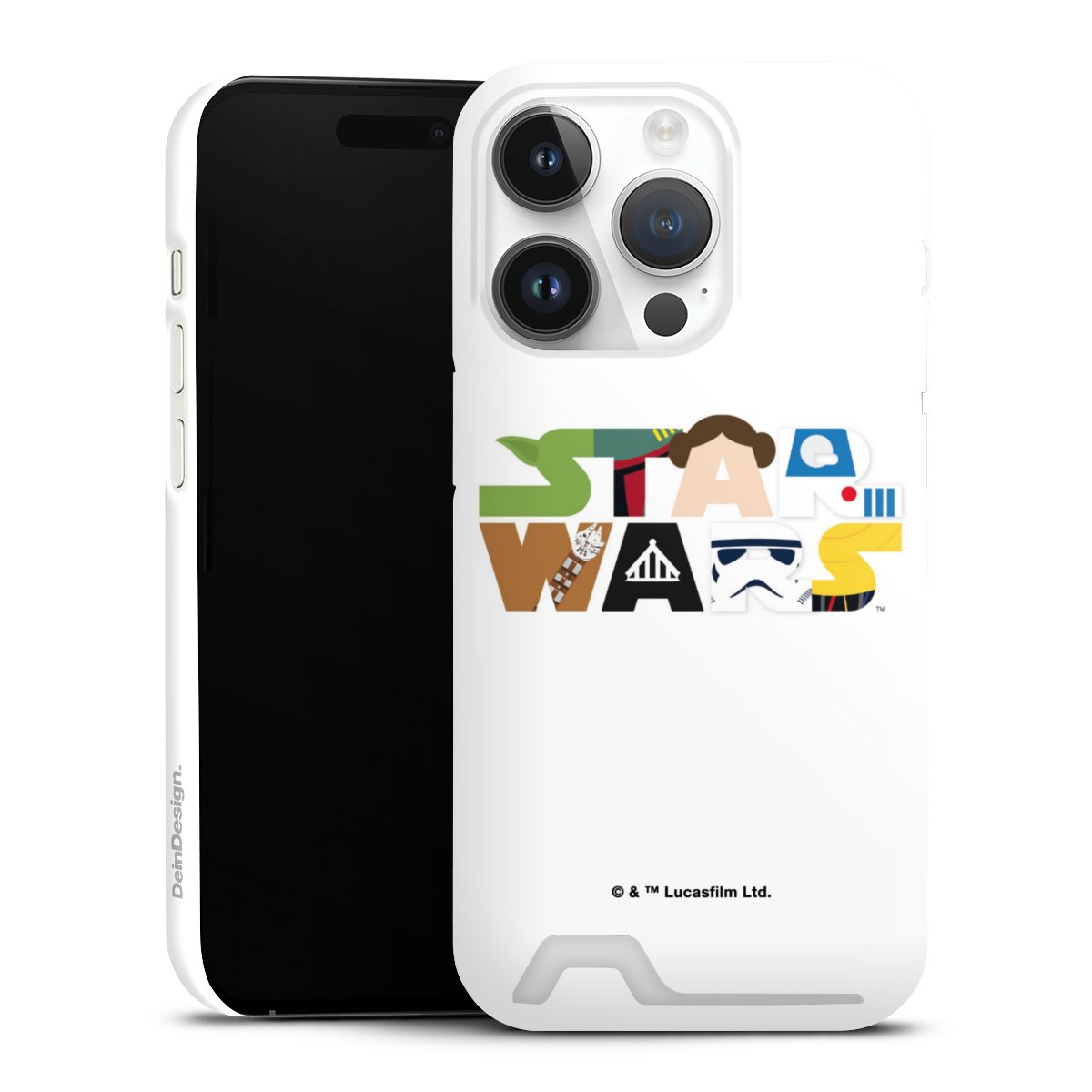 Darth Vader, C3PO, R2D2 und Meister Yoda findest Du in unserem Star Wars Shop auf DeinDesign. Natürlich gibt es auch Star Wars Handyhüllen mit den legendären Charakteren Luke Skywalker, Prinzessin Leia und Han Solo, den Helden der ersten Saga. Wer jedoch die Hauptfiguren der neuen Star Wars Filme ins Herz geschlossen hat, kann auch Finn und Rey mit ihren mächtigen Waffen auf der Rückseite seines Smartphones haben. Die vielseitigen Schutzhüllen in verschiedenen Ausführungen sind das perfekte Geschenk für alle Star Wars Fans, die ihrem Smartphone eine individuelle Note verleihen wollen.