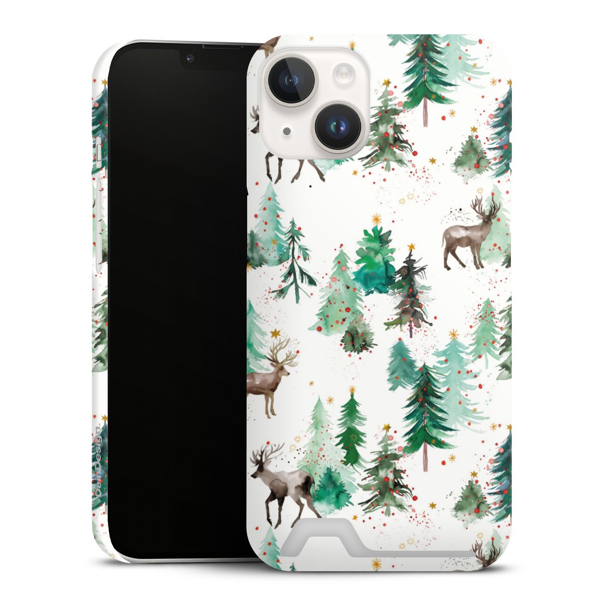 Hirsche und Winterweihnachtsbäume