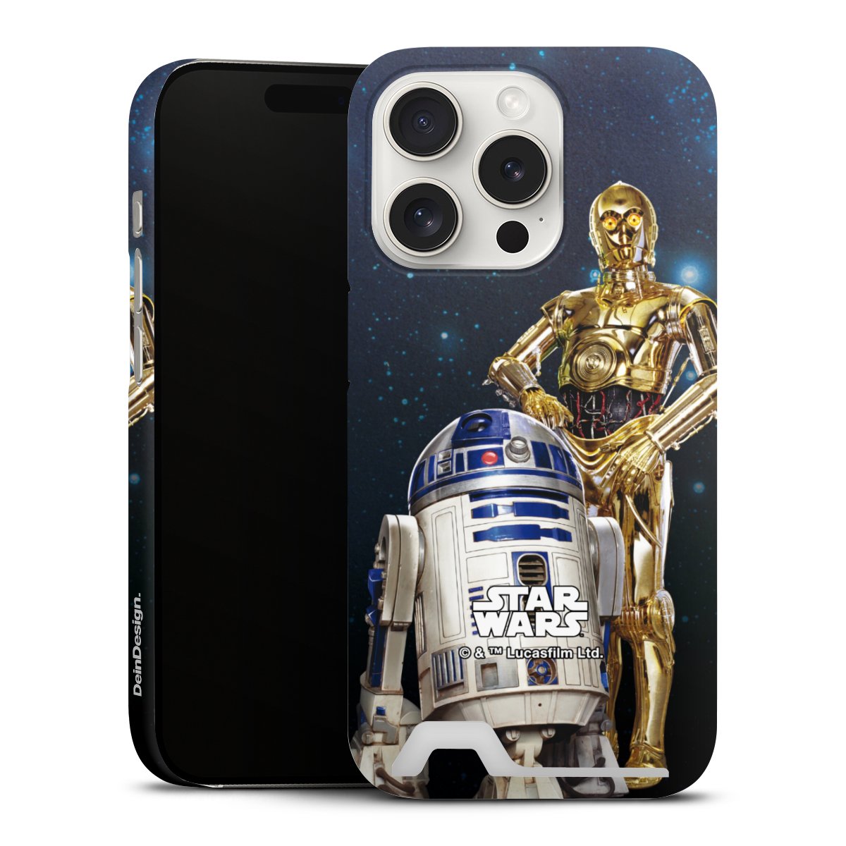 Darth Vader, C3PO, R2D2 und Meister Yoda findest Du in unserem Star Wars Shop auf DeinDesign. Natürlich gibt es auch Star Wars Handyhüllen mit den legendären Charakteren Luke Skywalker, Prinzessin Leia und Han Solo, den Helden der ersten Saga. Wer jedoch die Hauptfiguren der neuen Star Wars Filme ins Herz geschlossen hat, kann auch Finn und Rey mit ihren mächtigen Waffen auf der Rückseite seines Smartphones haben. Die vielseitigen Schutzhüllen in verschiedenen Ausführungen sind das perfekte Geschenk für alle Star Wars Fans, die ihrem Smartphone eine individuelle Note verleihen wollen.