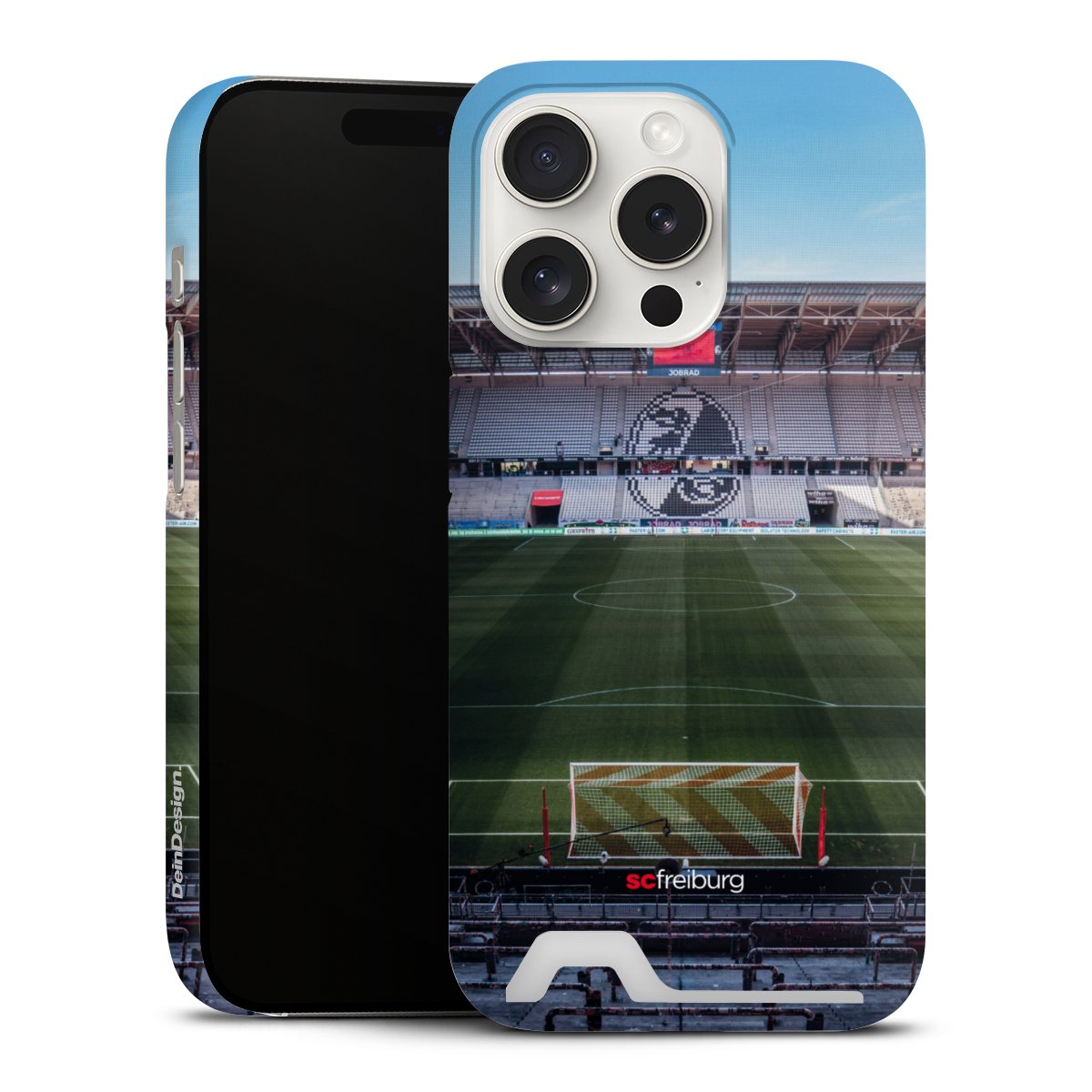 Bei DeinDesign kannst Du Dir eine individuelle SC-Freiburg-Handyhülle aussuchen, auf der das stilvolle schwarz-weiße Logo mit dem Greifenkopf zu sehen ist. Durch eine solche Hülle erhält Dein Smartphone ein unverkennbar individuelles Design. Der SC-Freiburg-Shop bietet lizensierte Fanartikel für alle Fans der Breisgau-Brasilianer.