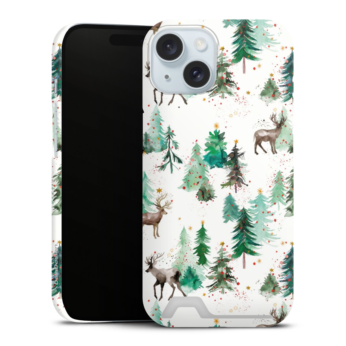 Hirsche und Winterweihnachtsbäume