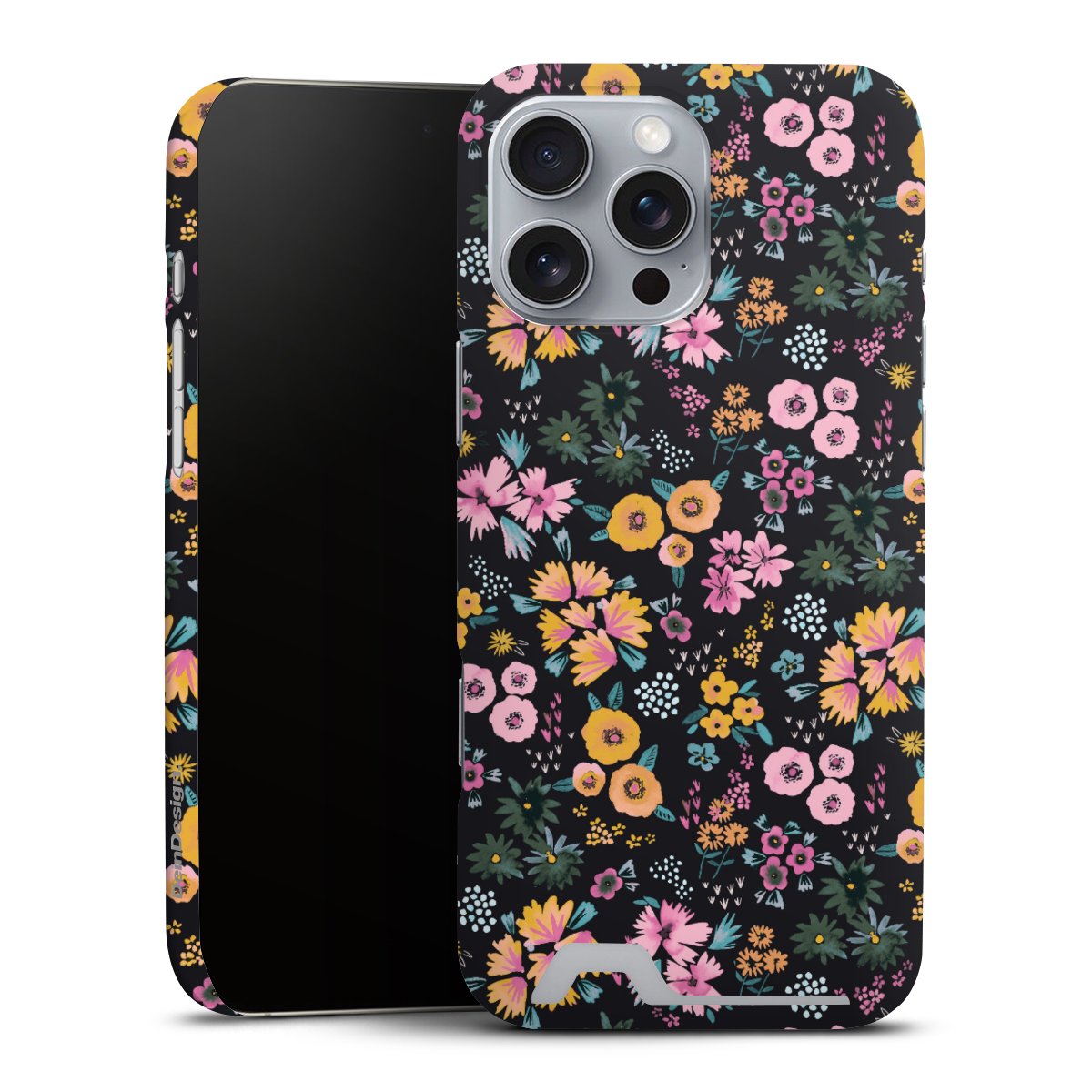 Kleine bunte Blumen Schwarz 2