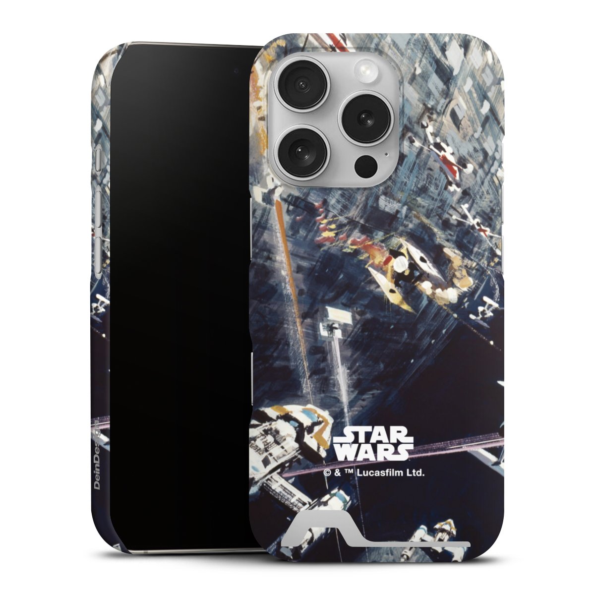 Darth Vader, C3PO, R2D2 und Meister Yoda findest Du in unserem Star Wars Shop auf DeinDesign. Natürlich gibt es auch Star Wars Handyhüllen mit den legendären Charakteren Luke Skywalker, Prinzessin Leia und Han Solo, den Helden der ersten Saga. Wer jedoch die Hauptfiguren der neuen Star Wars Filme ins Herz geschlossen hat, kann auch Finn und Rey mit ihren mächtigen Waffen auf der Rückseite seines Smartphones haben. Die vielseitigen Schutzhüllen in verschiedenen Ausführungen sind das perfekte Geschenk für alle Star Wars Fans, die ihrem Smartphone eine individuelle Note verleihen wollen.
