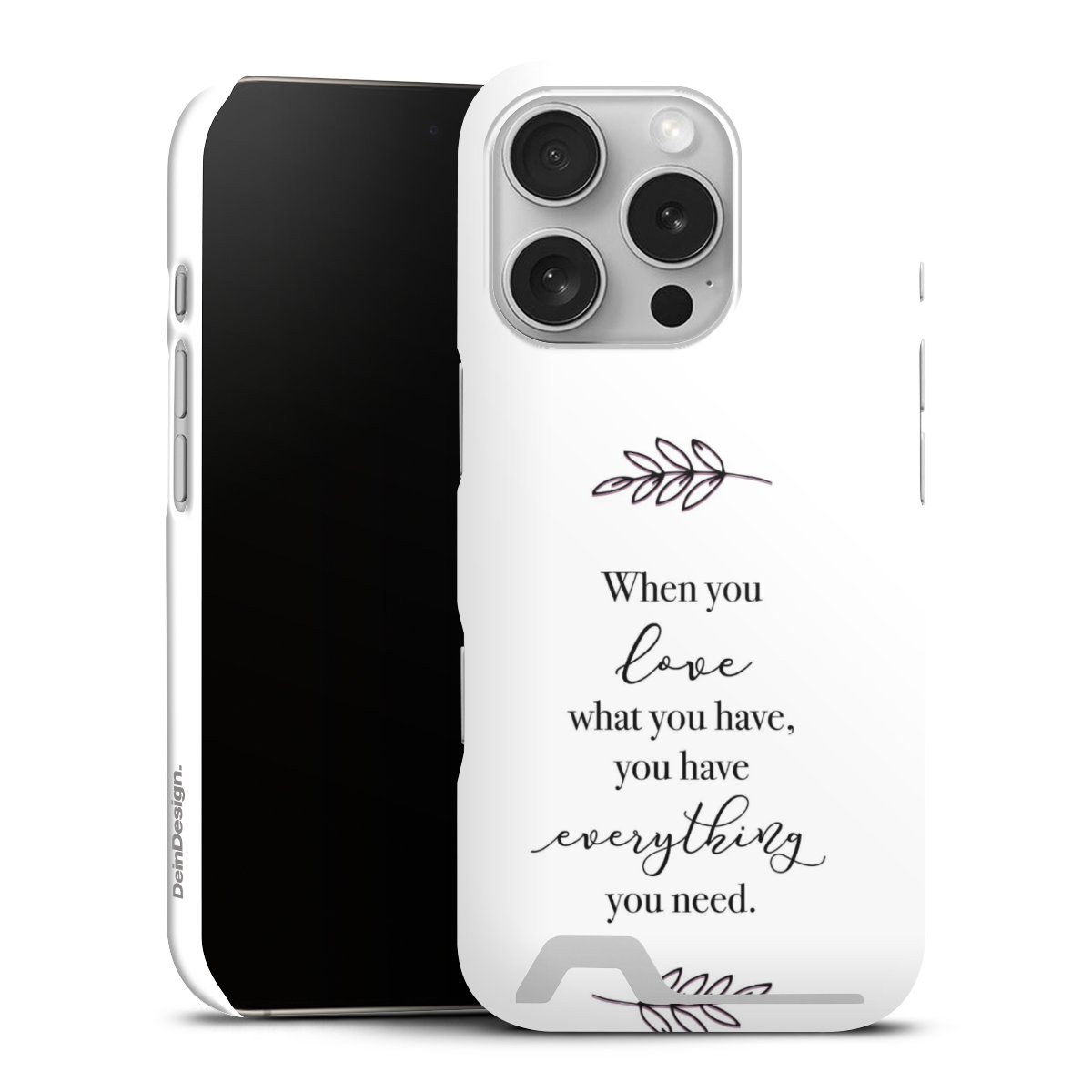 Entscheide Dich für einen Spruch, der zu 100% aussagt wofür Du einstehst. Zusätzlich kannst Du zu Deinem ausgewählten Spruch ein passendes Motiv kombinieren, sodass Dein Smartphone optisch was zu bieten hat. Doch nicht nur für das Aussehen sorgen wir, sondern auch zuverlässigen Schutz vor unschönen Alltagsgebrauchsspuren garantieren wir Dir. DeinDesign steht für innovative Drucktechnologie und hochwertige Materialien.