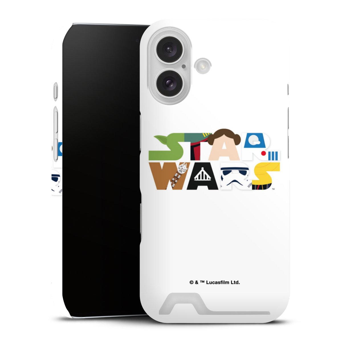 Darth Vader, C3PO, R2D2 und Meister Yoda findest Du in unserem Star Wars Shop auf DeinDesign. Natürlich gibt es auch Star Wars Handyhüllen mit den legendären Charakteren Luke Skywalker, Prinzessin Leia und Han Solo, den Helden der ersten Saga. Wer jedoch die Hauptfiguren der neuen Star Wars Filme ins Herz geschlossen hat, kann auch Finn und Rey mit ihren mächtigen Waffen auf der Rückseite seines Smartphones haben. Die vielseitigen Schutzhüllen in verschiedenen Ausführungen sind das perfekte Geschenk für alle Star Wars Fans, die ihrem Smartphone eine individuelle Note verleihen wollen.