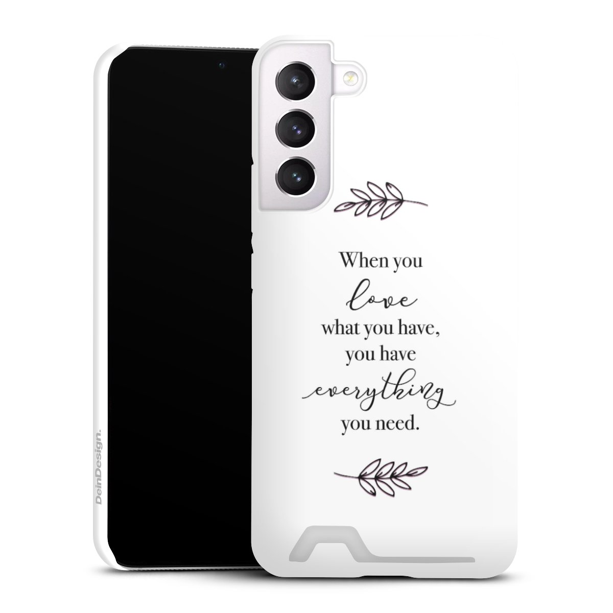 Entscheide Dich für einen Spruch, der zu 100% aussagt wofür Du einstehst. Zusätzlich kannst Du zu Deinem ausgewählten Spruch ein passendes Motiv kombinieren, sodass Dein Smartphone optisch was zu bieten hat. Doch nicht nur für das Aussehen sorgen wir, sondern auch zuverlässigen Schutz vor unschönen Alltagsgebrauchsspuren garantieren wir Dir. DeinDesign steht für innovative Drucktechnologie und hochwertige Materialien.