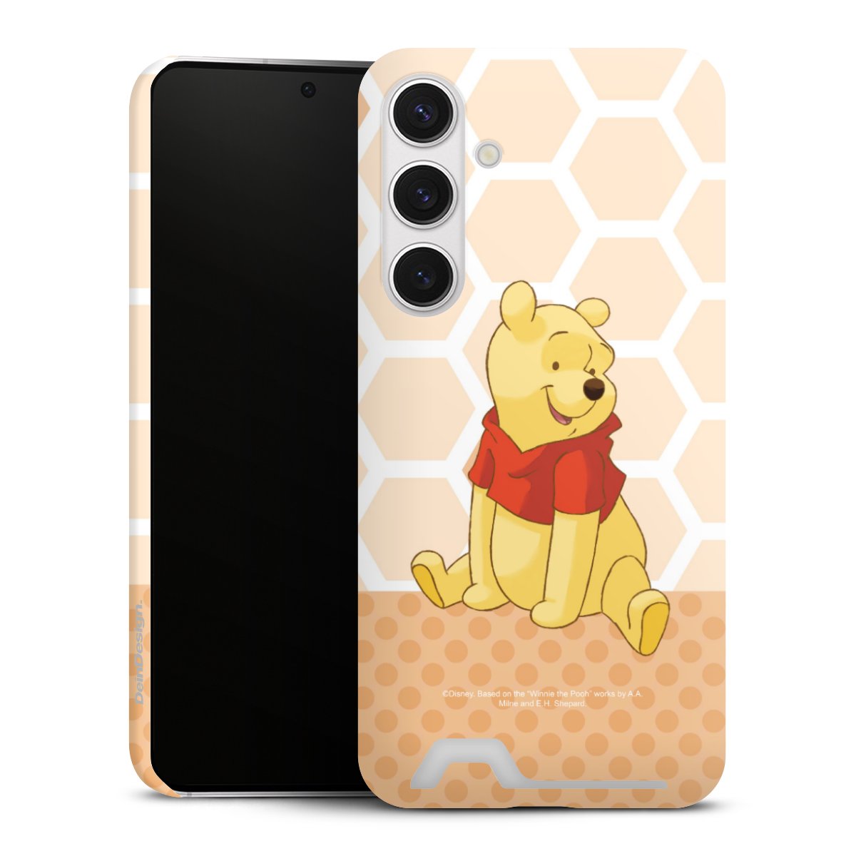 Wer kennt ihn nicht, den süßen Bären Winnie Puuh, der gemeinsam mit seinen Freunden Tigger, Ferkel, I-Aah, Ruh, Rabbit und dem Jungen Christopher Robin lustige Abenteuer erlebt und dessen liebstes Hobby das Honig-Naschen ist? Mit der Winnie Puuh Handyhülle verwandelst Du Dein Smartphone in einen richtig süßen Hingucker. Die DeinDesign-Hüllen werten das Smartphone nicht nur optisch auf, sondern bieten auch einen Rundum-Schutz.