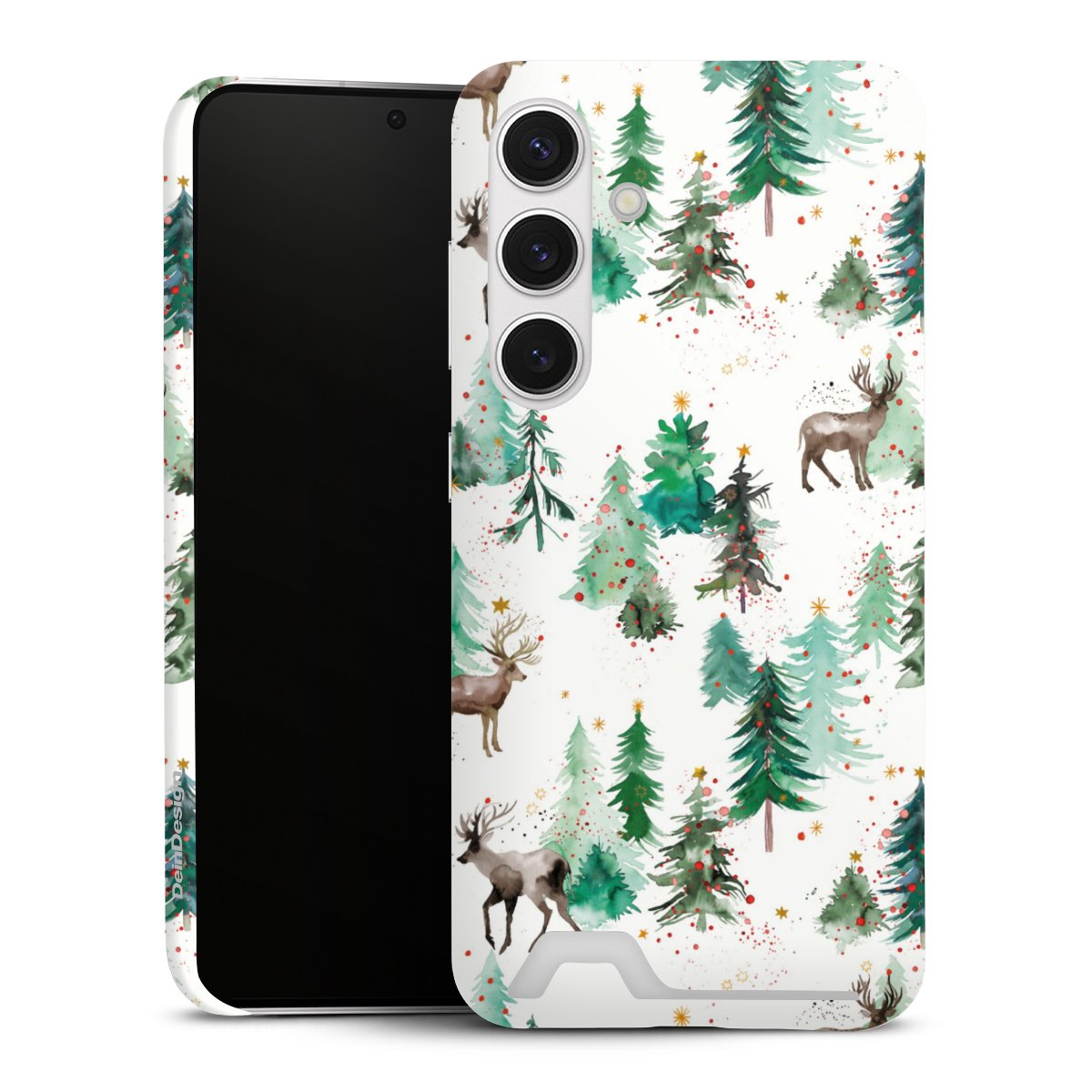 Hirsche und Winterweihnachtsbäume