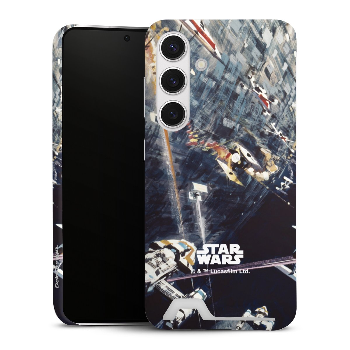 Darth Vader, C3PO, R2D2 und Meister Yoda findest Du in unserem Star Wars Shop auf DeinDesign. Natürlich gibt es auch Star Wars Handyhüllen mit den legendären Charakteren Luke Skywalker, Prinzessin Leia und Han Solo, den Helden der ersten Saga. Wer jedoch die Hauptfiguren der neuen Star Wars Filme ins Herz geschlossen hat, kann auch Finn und Rey mit ihren mächtigen Waffen auf der Rückseite seines Smartphones haben. Die vielseitigen Schutzhüllen in verschiedenen Ausführungen sind das perfekte Geschenk für alle Star Wars Fans, die ihrem Smartphone eine individuelle Note verleihen wollen.