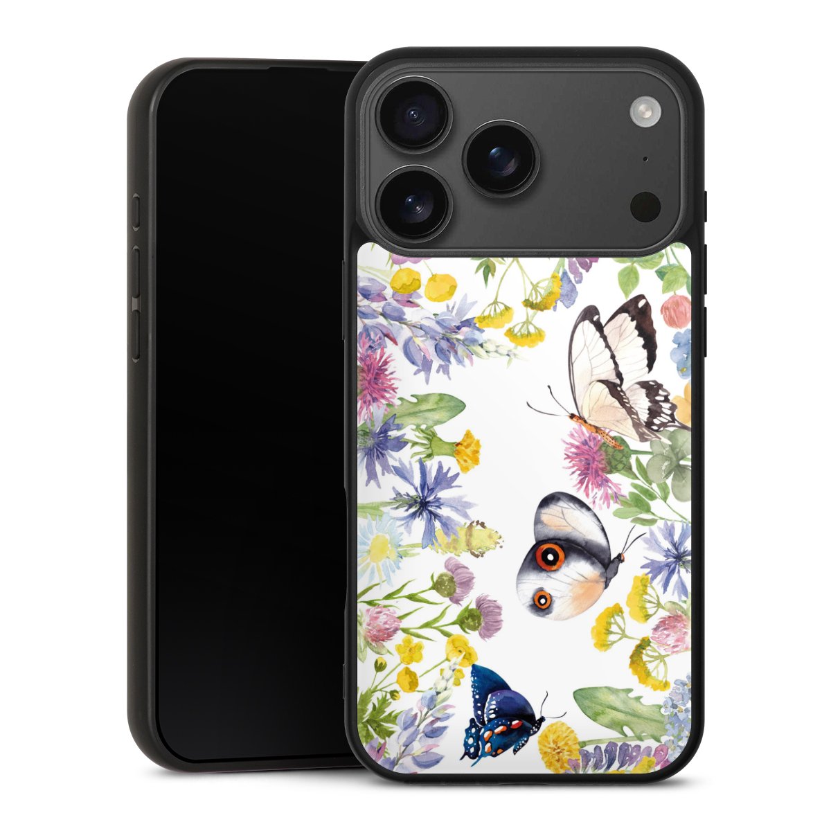 Bunte Frühlingsblumen und Schmetterlinge