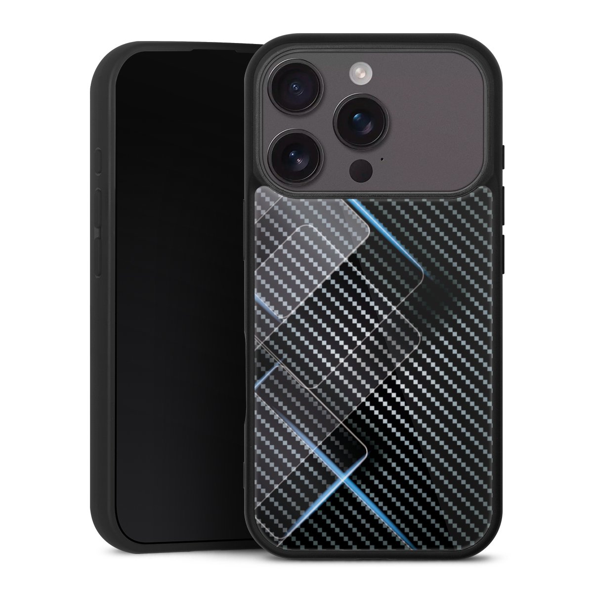 Blaue Linien auf Karbon