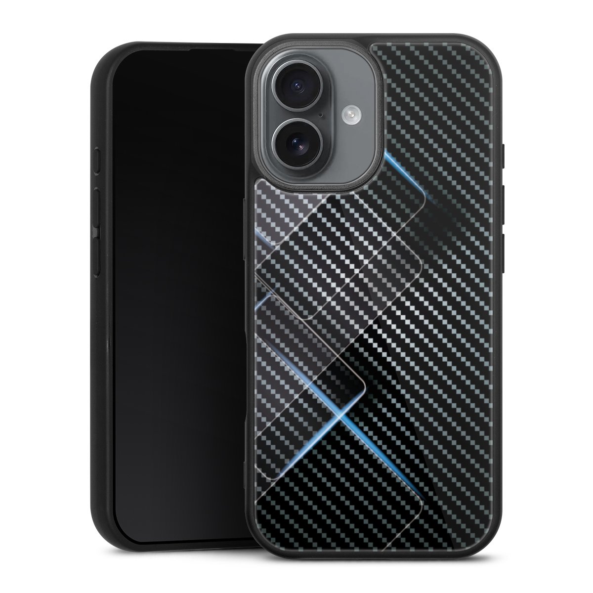 Blaue Linien auf Karbon