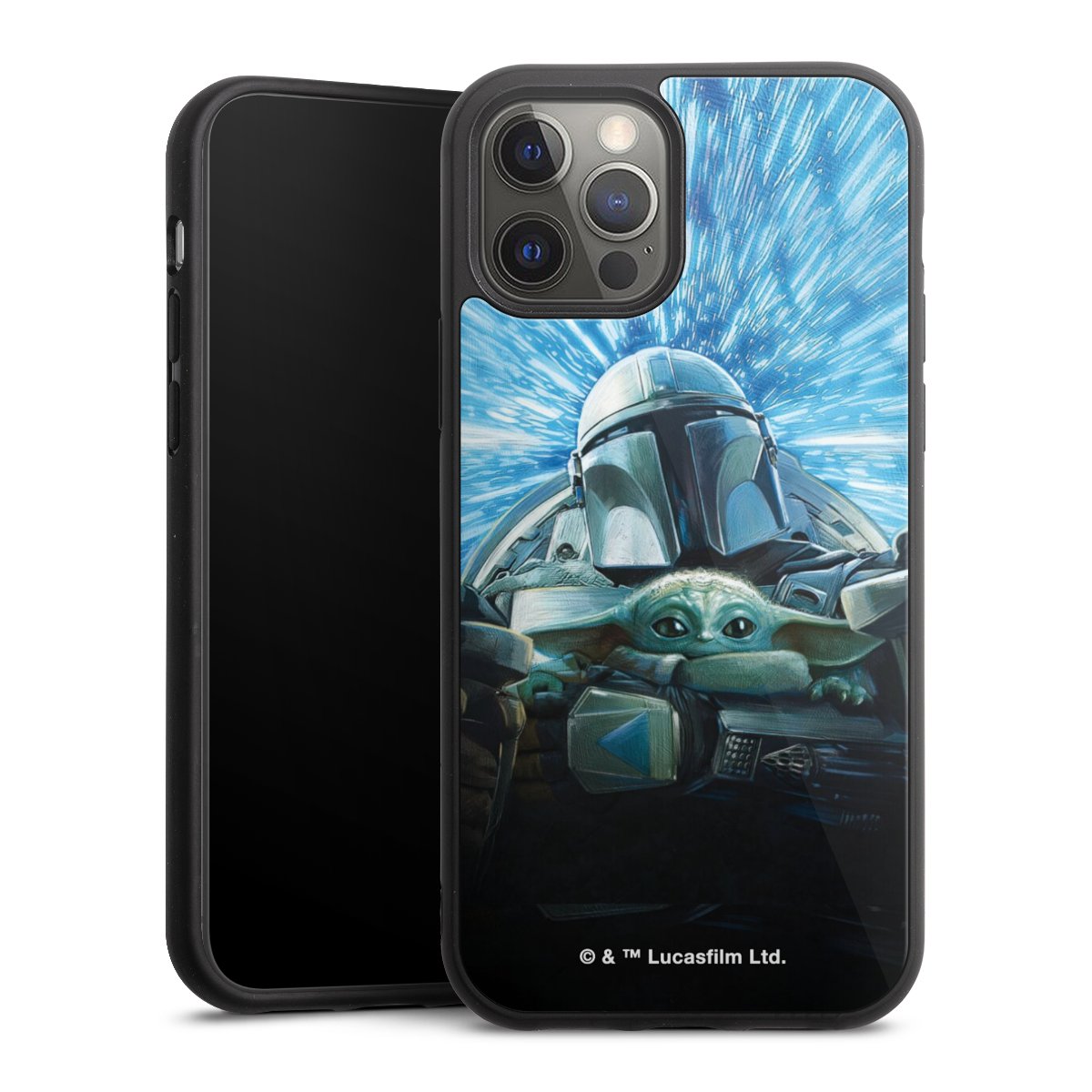 Grogu und Mando fliegen blau
