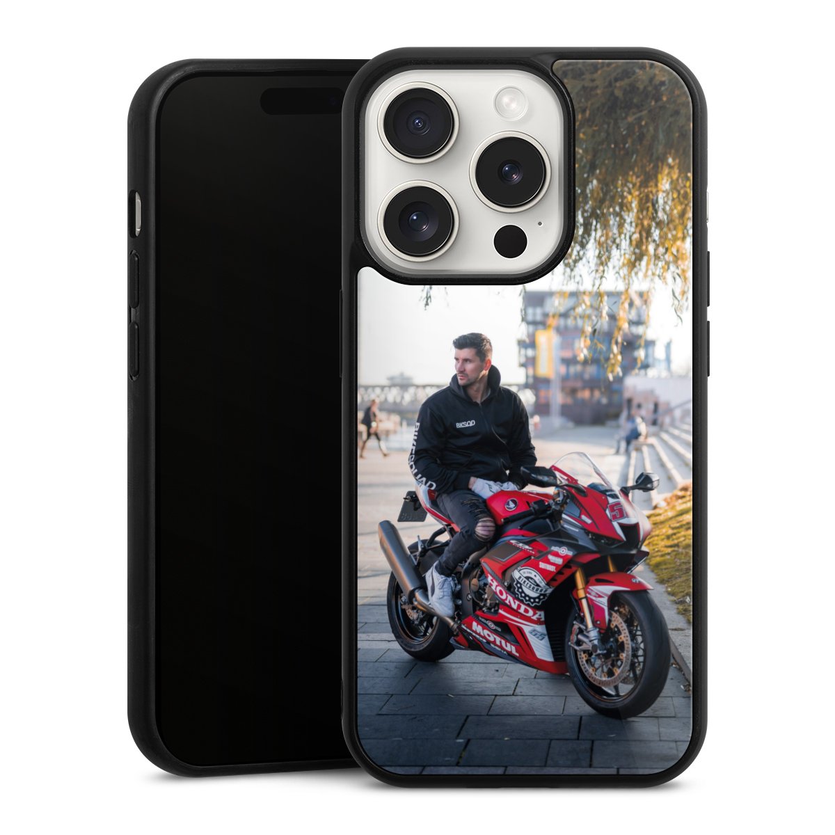 Wir drucken Dein Motiv auf die Rückseite des Glasinlays und verbinden es anschließend fest mit der Silikonhülle, sodass nichts übersteht und alles wie aus einem Guss wirkt. Außerdem ist das stabile Glaselement durch eine zusätzliche Beschichtung vor Kratzern geschützt und sorgt für eine leichte Reflexion auf dem brillanten Druckbild.