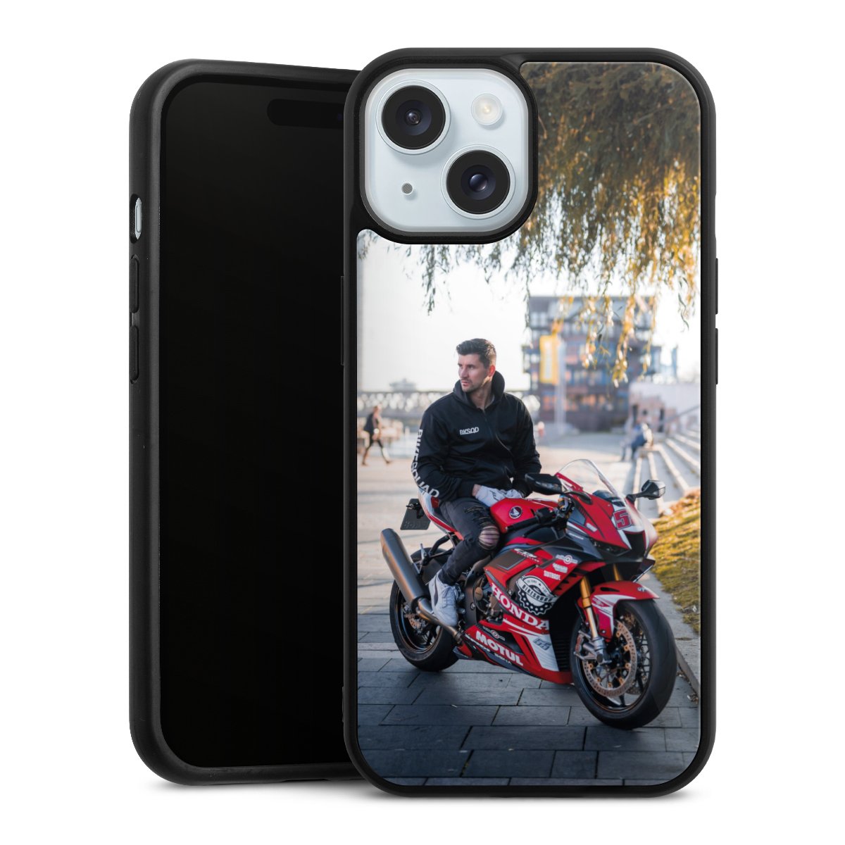 Wir drucken Dein Motiv auf die Rückseite des Glasinlays und verbinden es anschließend fest mit der Silikonhülle, sodass nichts übersteht und alles wie aus einem Guss wirkt. Außerdem ist das stabile Glaselement durch eine zusätzliche Beschichtung vor Kratzern geschützt und sorgt für eine leichte Reflexion auf dem brillanten Druckbild.