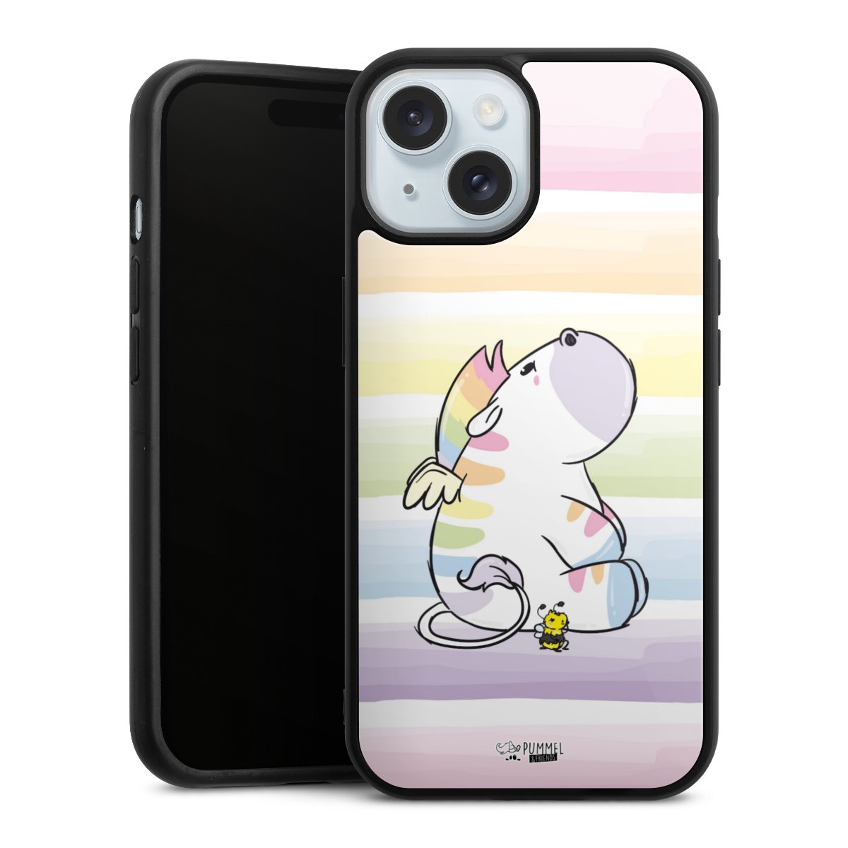 Wir drucken Dein Motiv auf die Rückseite des Glasinlays und verbinden es anschließend fest mit der Silikonhülle, sodass nichts übersteht und alles wie aus einem Guss wirkt. Außerdem ist das stabile Glaselement durch eine zusätzliche Beschichtung vor Kratzern geschützt und sorgt für eine leichte Reflexion auf dem brillanten Druckbild.