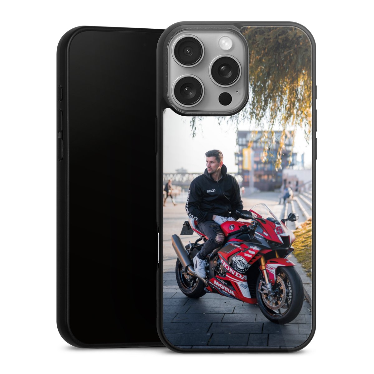 Wir drucken Dein Motiv auf die Rückseite des Glasinlays und verbinden es anschließend fest mit der Silikonhülle, sodass nichts übersteht und alles wie aus einem Guss wirkt. Außerdem ist das stabile Glaselement durch eine zusätzliche Beschichtung vor Kratzern geschützt und sorgt für eine leichte Reflexion auf dem brillanten Druckbild.