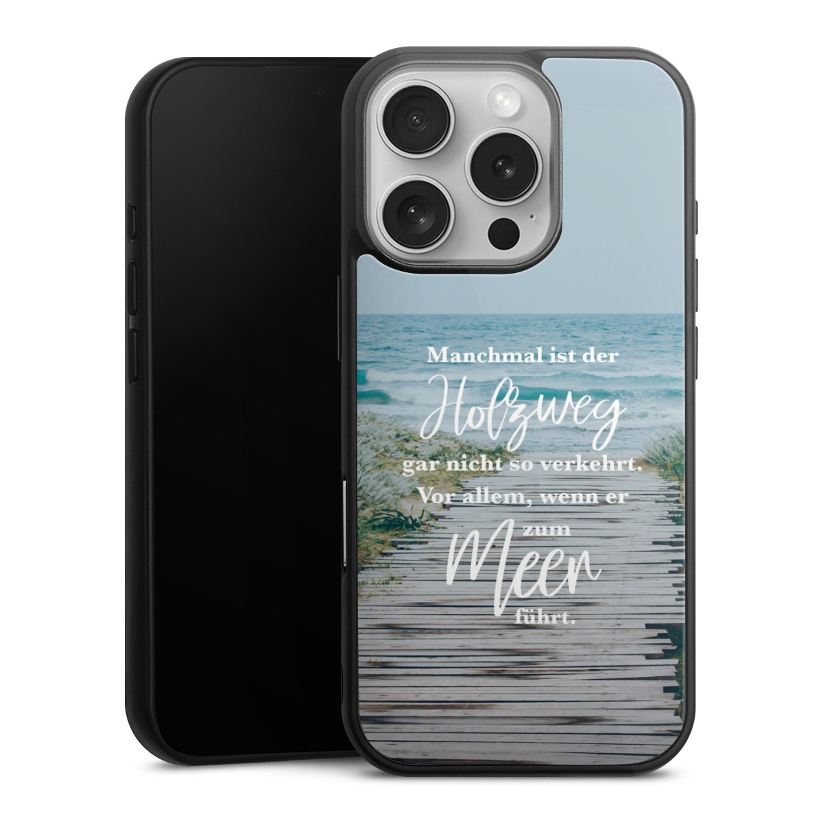 Wir drucken Dein Motiv auf die Rückseite des Glasinlays und verbinden es anschließend fest mit der Silikonhülle, sodass nichts übersteht und alles wie aus einem Guss wirkt. Außerdem ist das stabile Glaselement durch eine zusätzliche Beschichtung vor Kratzern geschützt und sorgt für eine leichte Reflexion auf dem brillanten Druckbild.