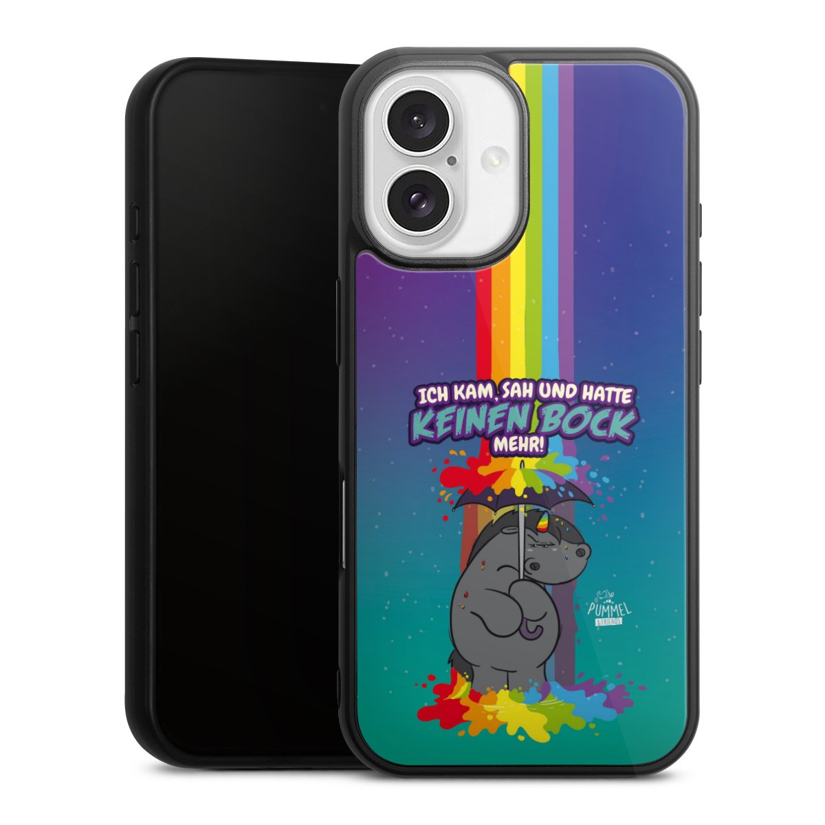 Wir drucken Dein Motiv auf die Rückseite des Glasinlays und verbinden es anschließend fest mit der Silikonhülle, sodass nichts übersteht und alles wie aus einem Guss wirkt. Außerdem ist das stabile Glaselement durch eine zusätzliche Beschichtung vor Kratzern geschützt und sorgt für eine leichte Reflexion auf dem brillanten Druckbild.