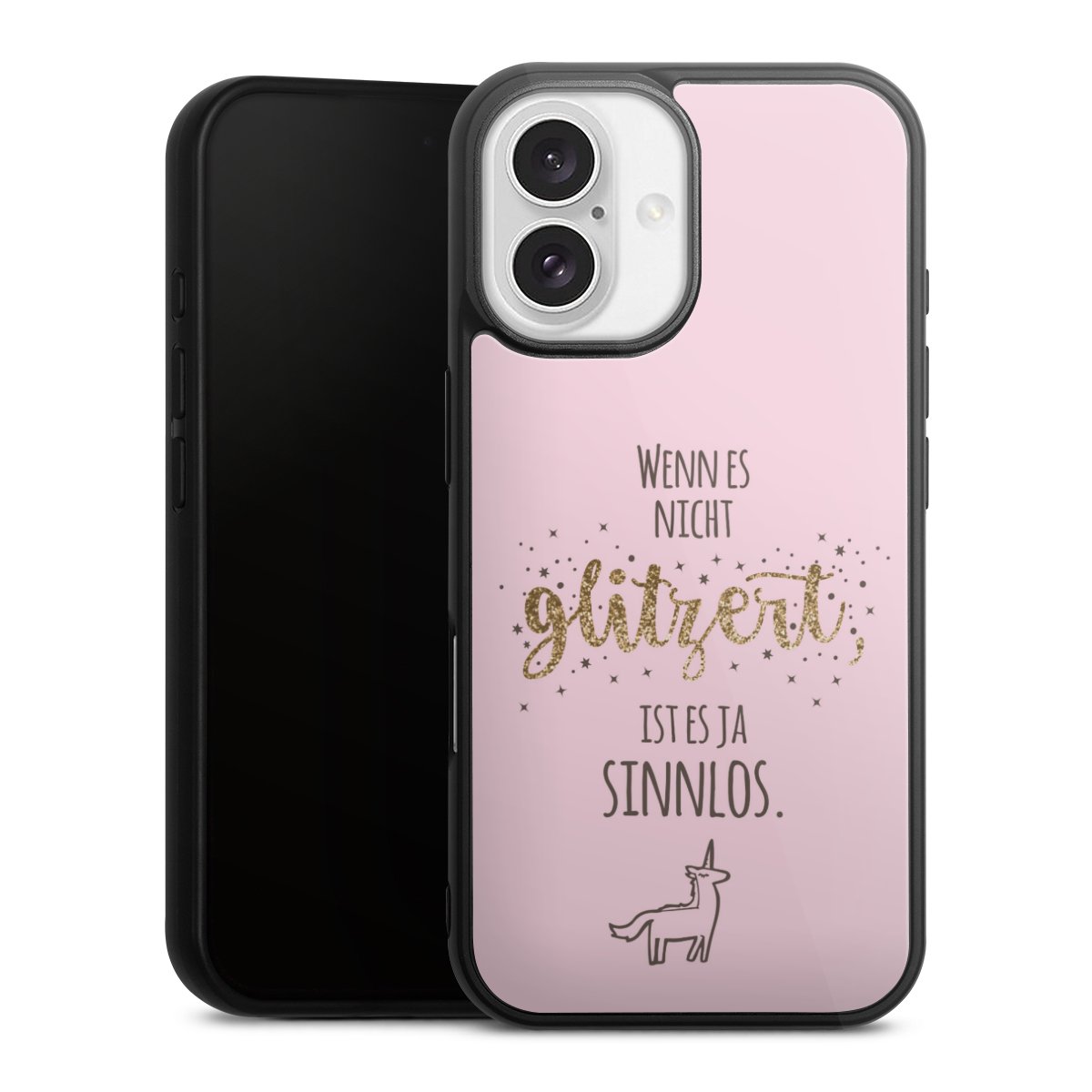 Wir drucken Dein Motiv auf die Rückseite des Glasinlays und verbinden es anschließend fest mit der Silikonhülle, sodass nichts übersteht und alles wie aus einem Guss wirkt. Außerdem ist das stabile Glaselement durch eine zusätzliche Beschichtung vor Kratzern geschützt und sorgt für eine leichte Reflexion auf dem brillanten Druckbild.