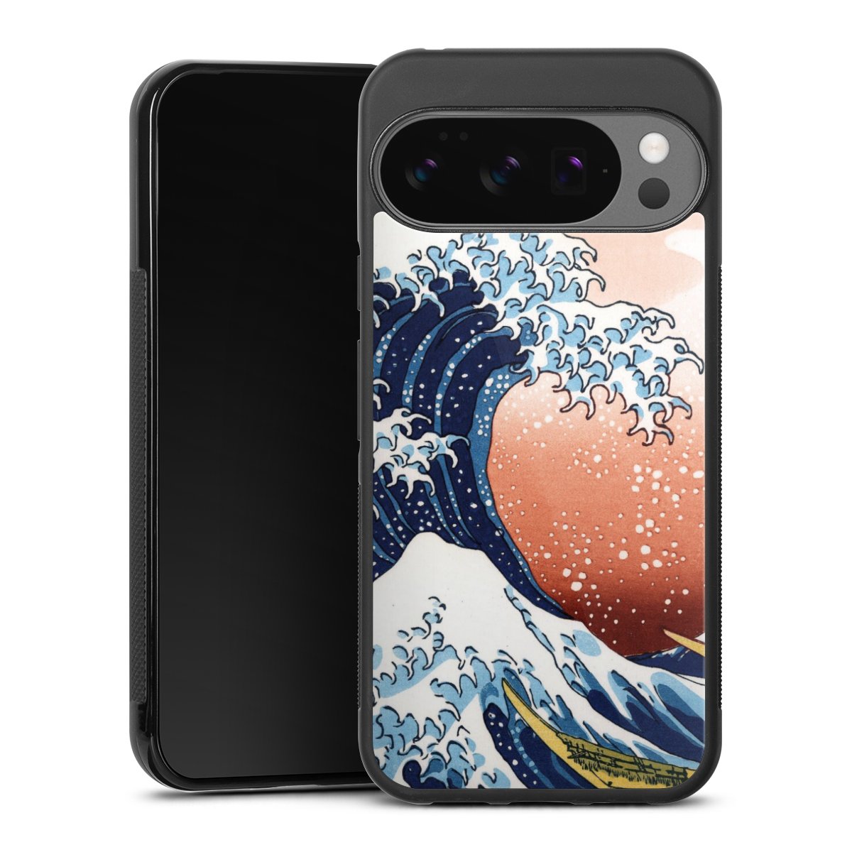 Kanagawa Welle Mit Rotem Hintergrund