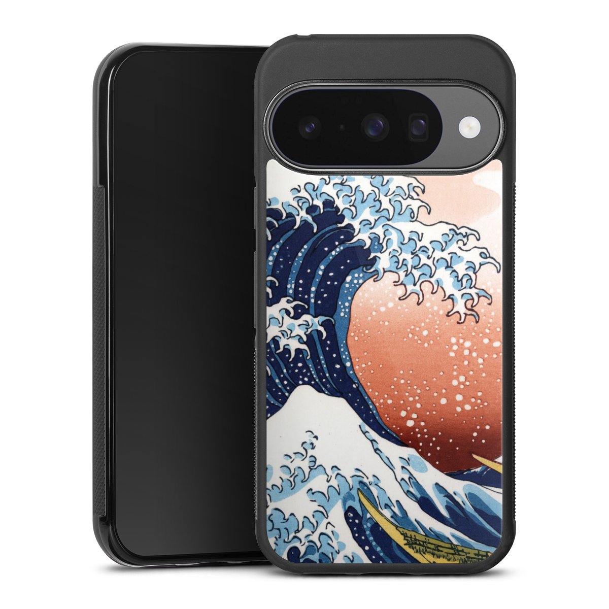 Kanagawa Welle Mit Rotem Hintergrund