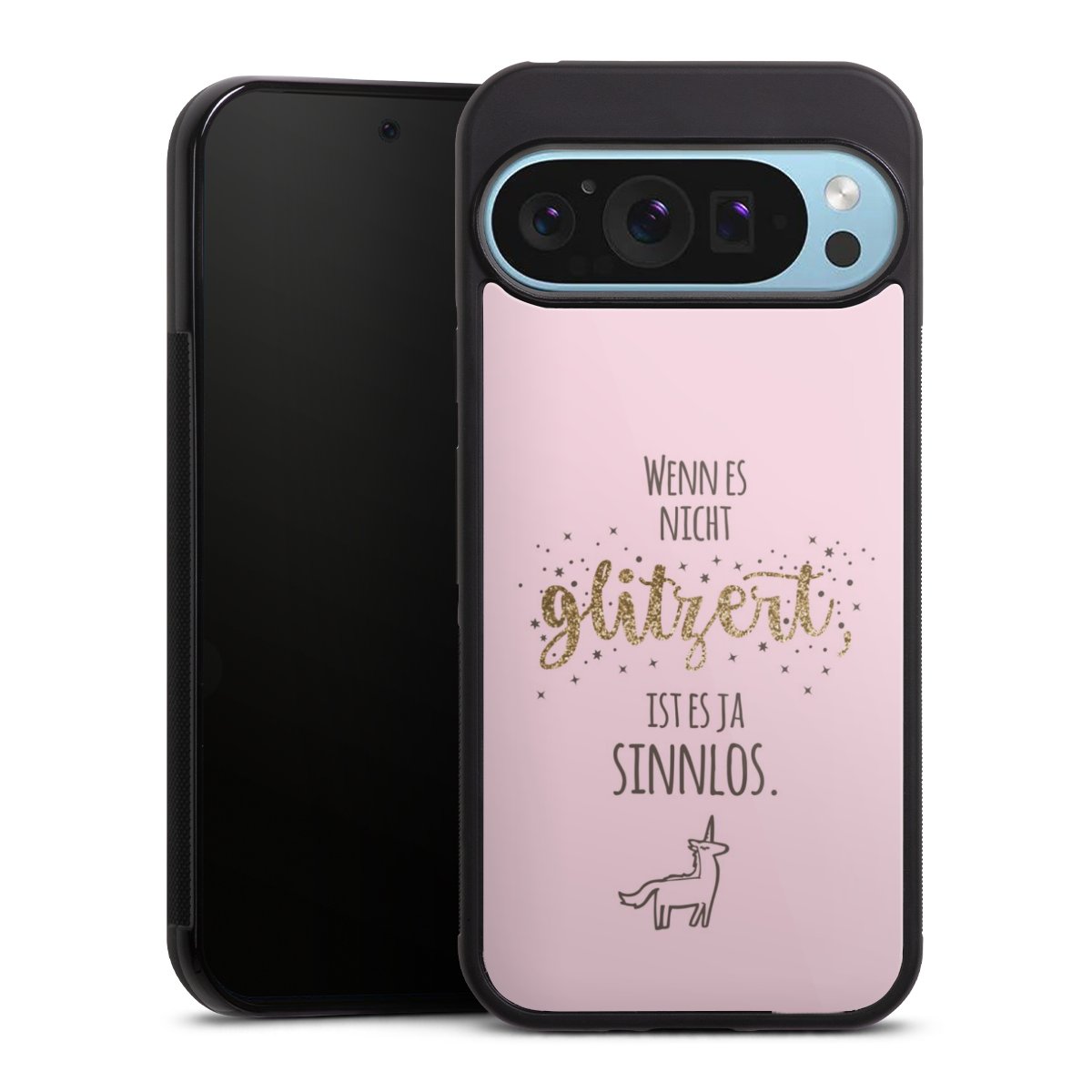 Wir drucken Dein Motiv auf die Rückseite des Glasinlays und verbinden es anschließend fest mit der Silikonhülle, sodass nichts übersteht und alles wie aus einem Guss wirkt. Außerdem ist das stabile Glaselement durch eine zusätzliche Beschichtung vor Kratzern geschützt und sorgt für eine leichte Reflexion auf dem brillanten Druckbild.